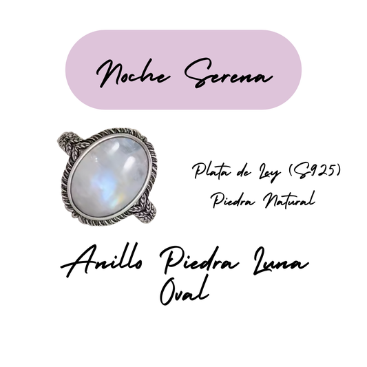 Anillo Piedra Lunar Oval - Noche Serena - Plata de Ley