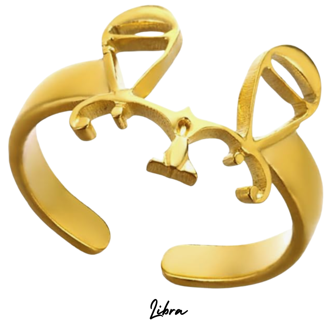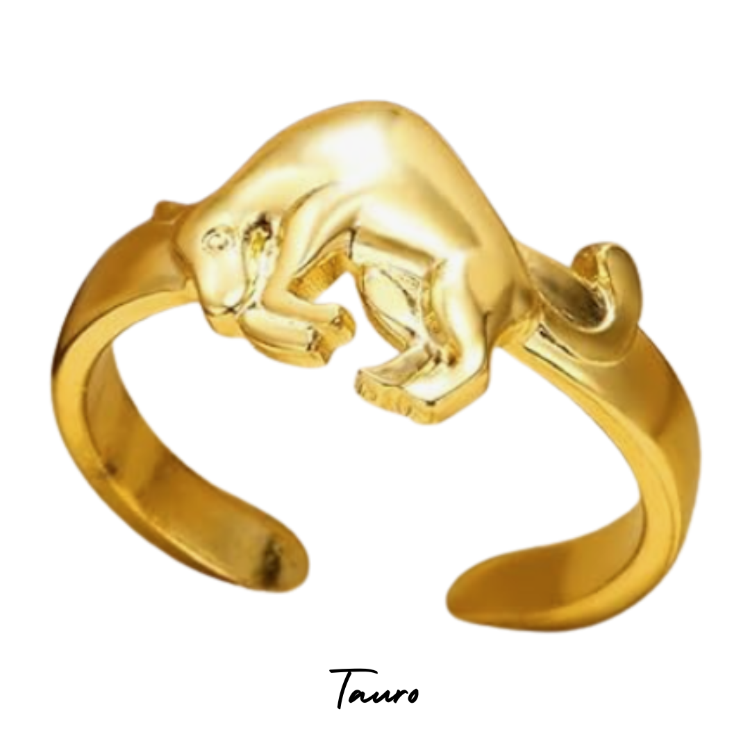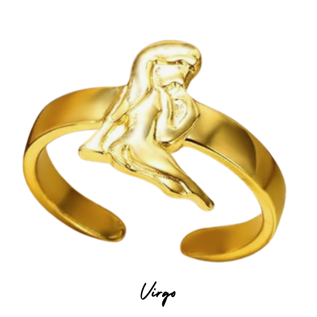 Doce anillos ajustables en Acero Inoxidable chapados en Oro de 18 kilates, creados para acompañarte siempre con la fuerza y el brillo de tu esencia zodiacal.