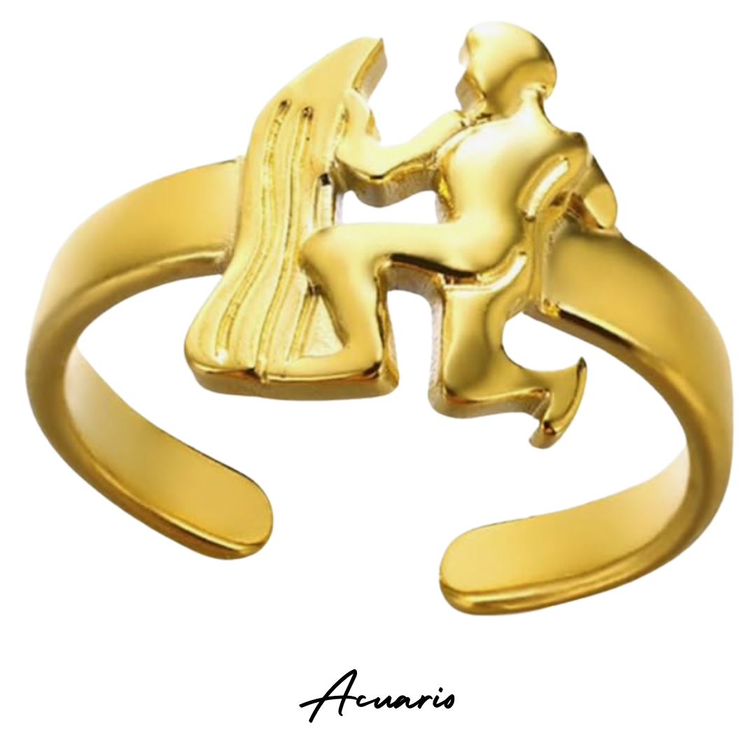 Doce anillos ajustables en Acero Inoxidable chapados en Oro de 18 kilates, creados para acompañarte siempre con la fuerza y el brillo de tu esencia zodiacal.