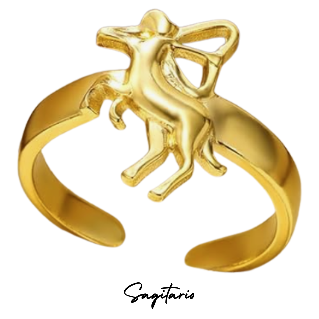 Doce anillos ajustables en Acero Inoxidable chapados en Oro de 18 kilates, creados para acompañarte siempre con la fuerza y el brillo de tu esencia zodiacal.