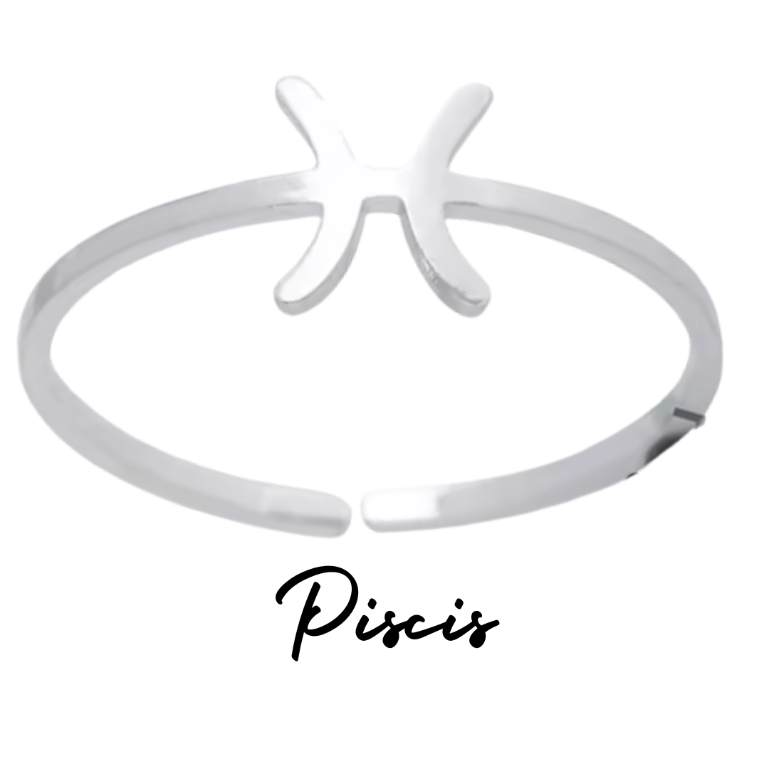 Anillo Plateado con Símbolo de PISCIS