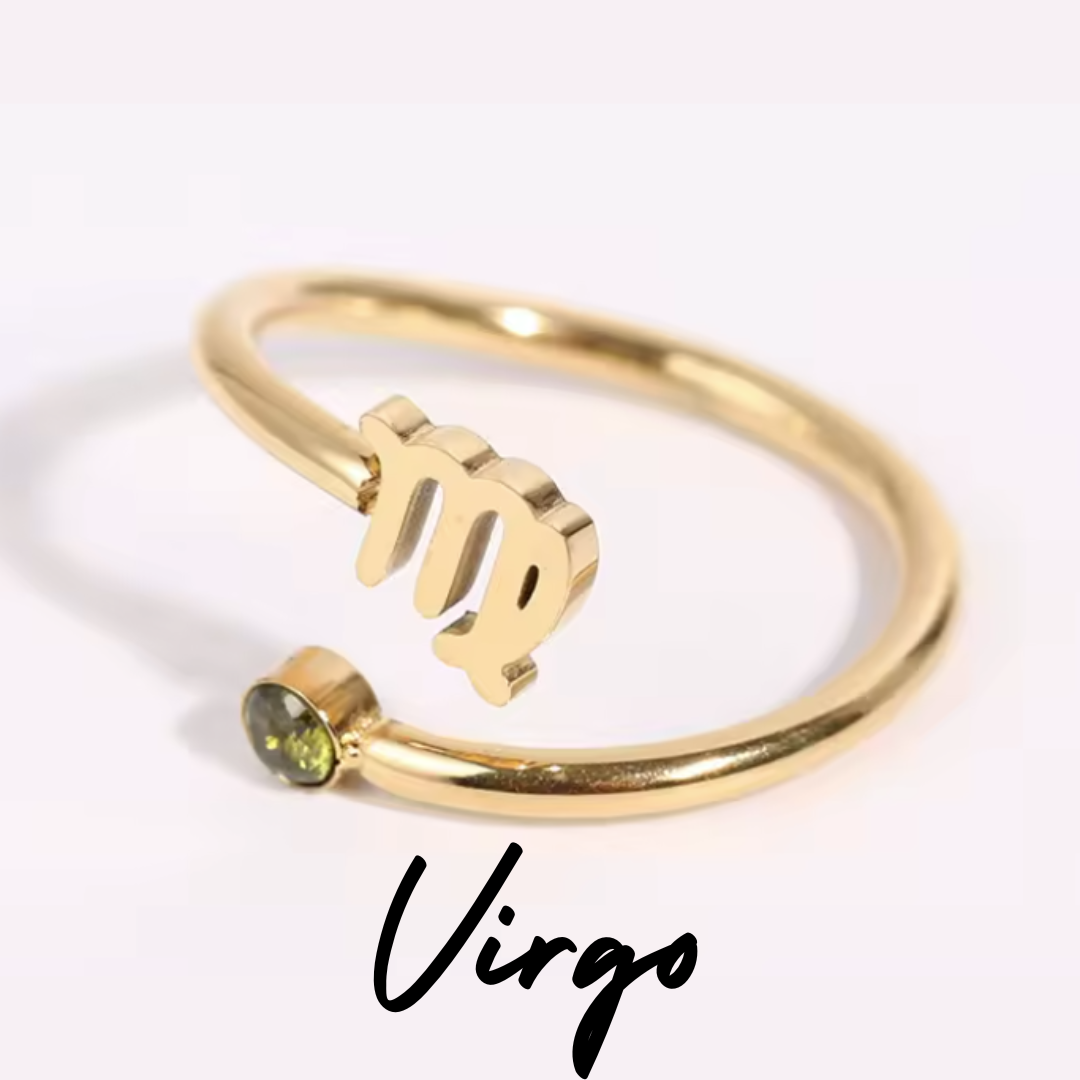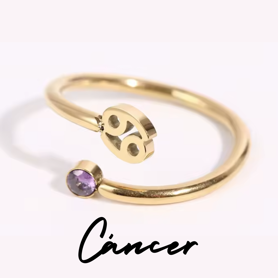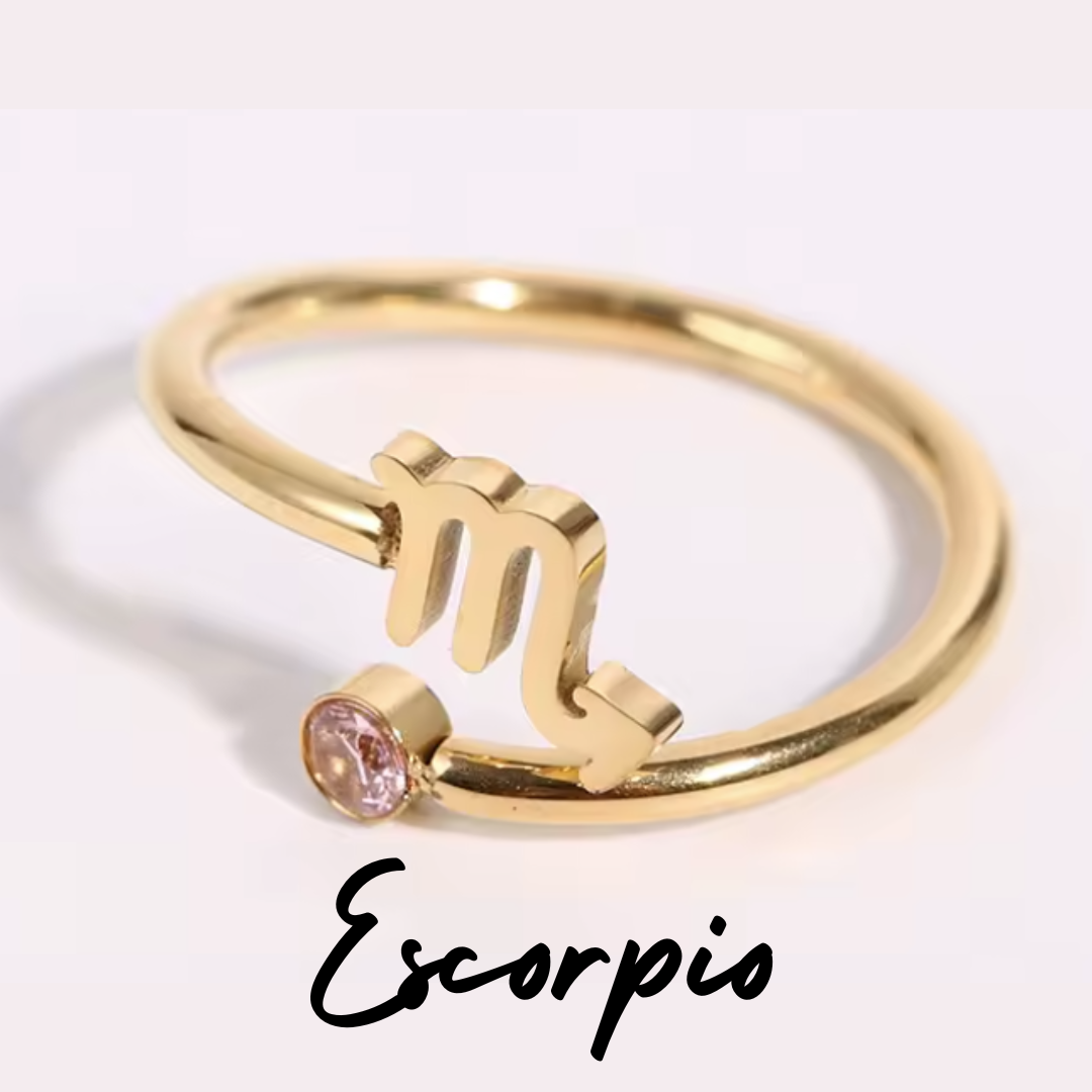 Este anillo zodiacal se funde con tu piel como un susurro de tu esencia: la del signo que te acompaña, que te define, y que brilla contigo cada día.