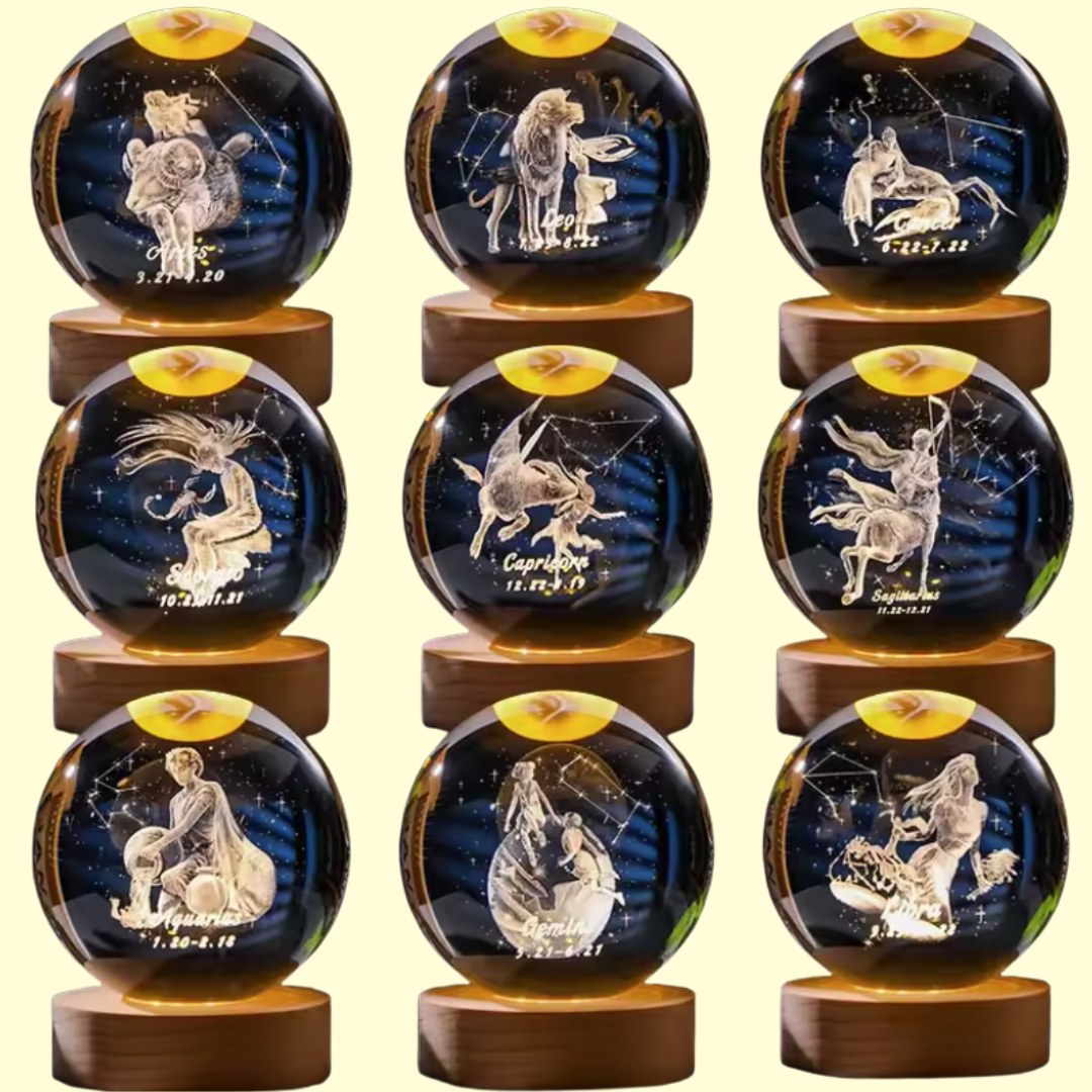 Cada esfera encierra la magia de tu signo, grabada en luz y reflejos que hablan de quién eres.