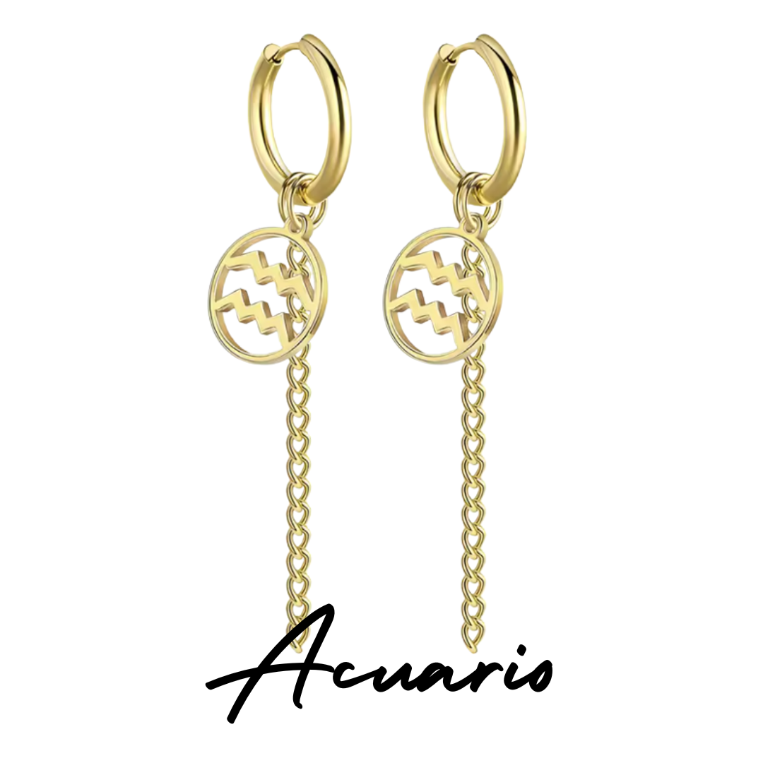 Pendientes Largos Dorados con Signo de ACUARIO