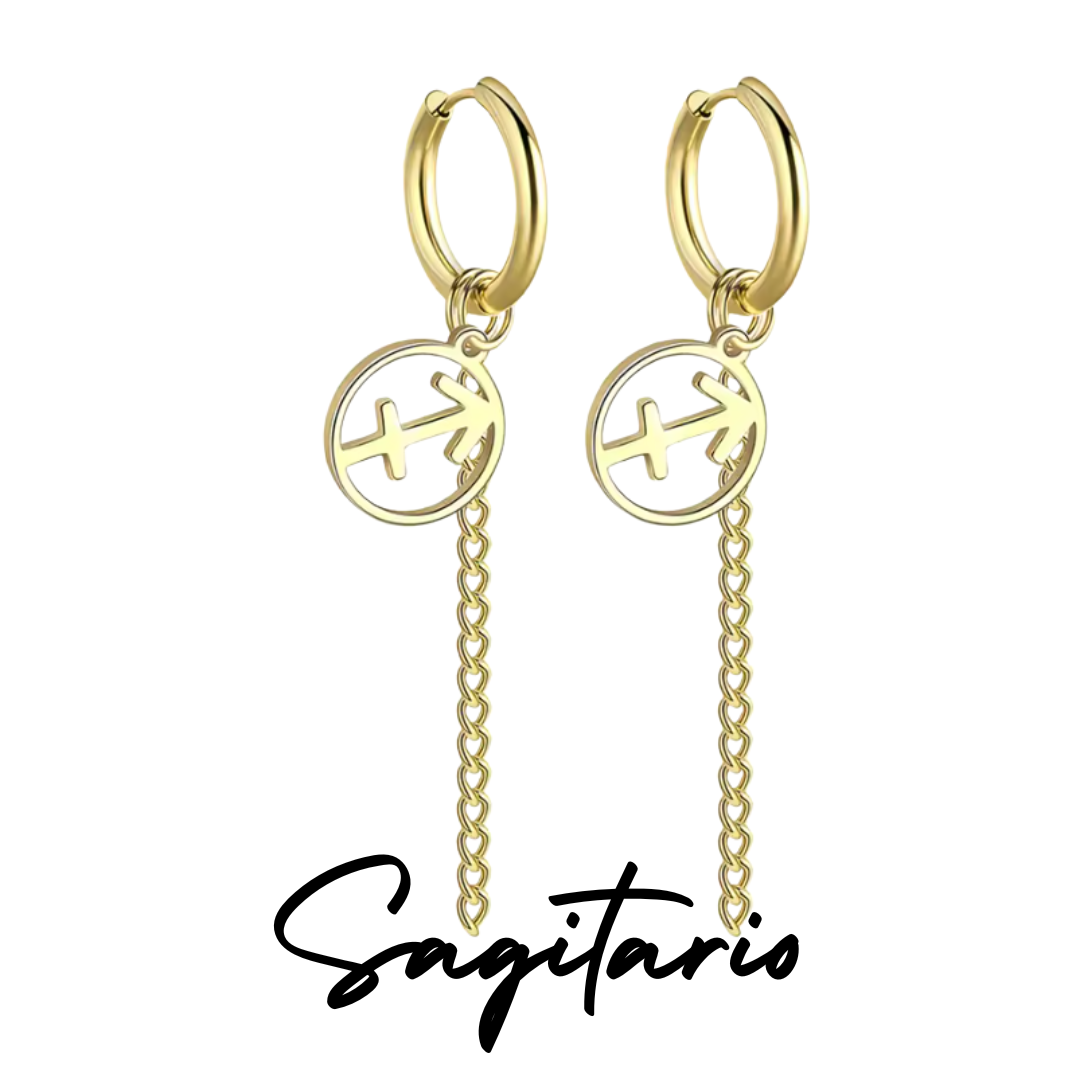 Pendientes Largos Dorados con Signo de SAGITARIO