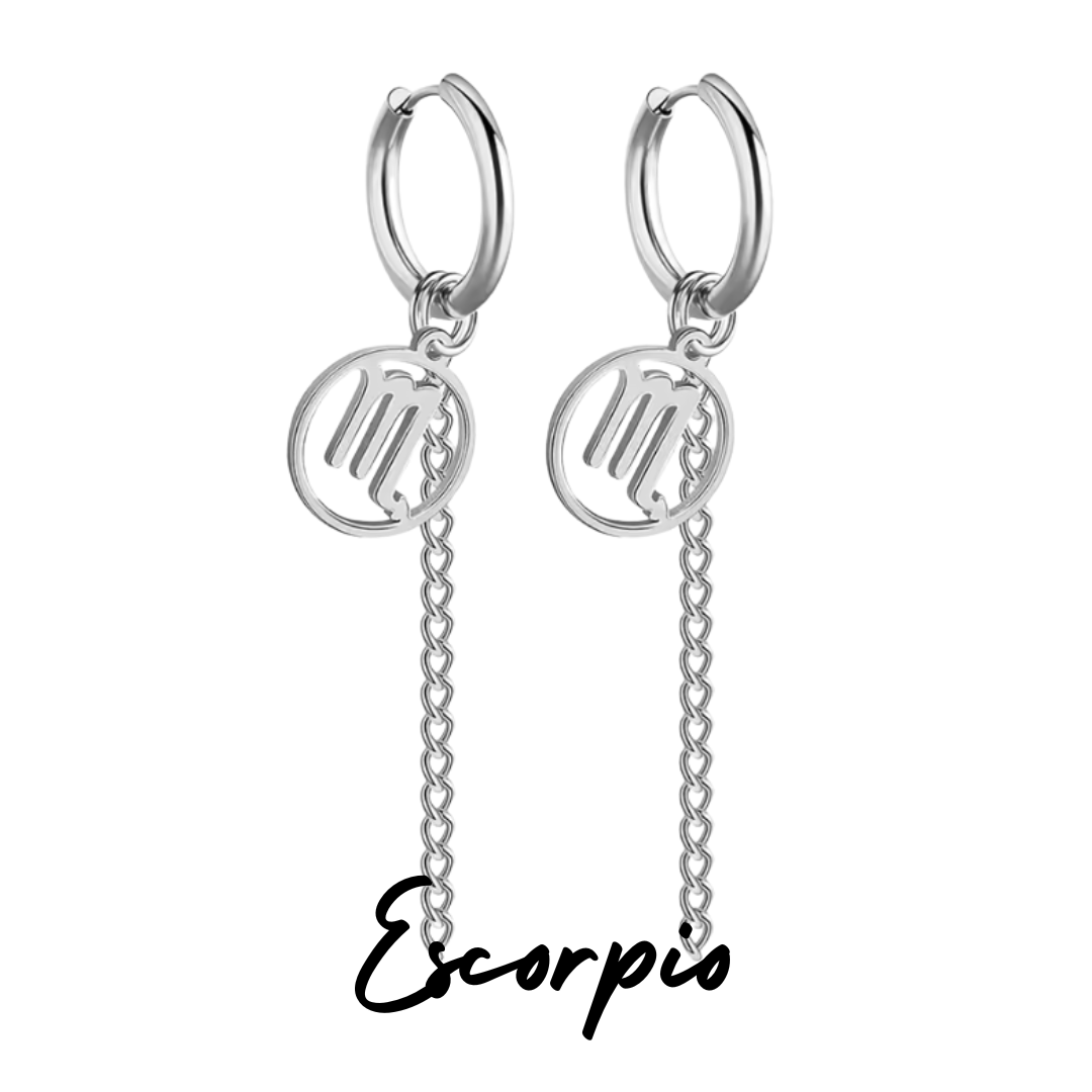 Pendientes Largos Plateados con Signo de ESCORPIO