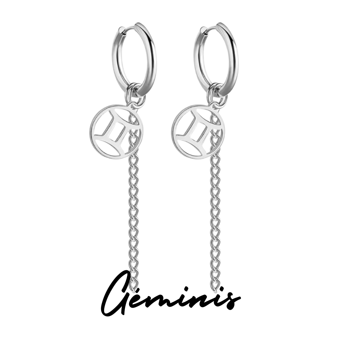 Pendientes Largos Plateados con Signo de GÉMINIS