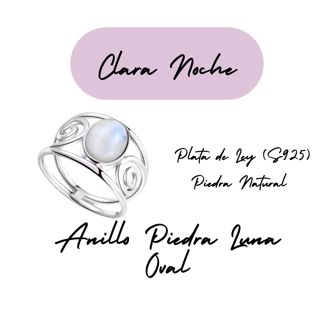 Anillo Piedra Lunar Oval - Clara Noche - Plata de Ley