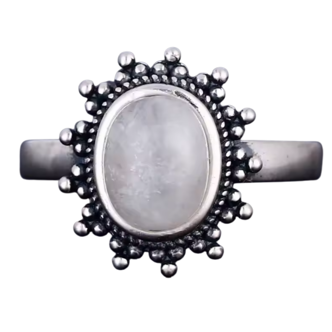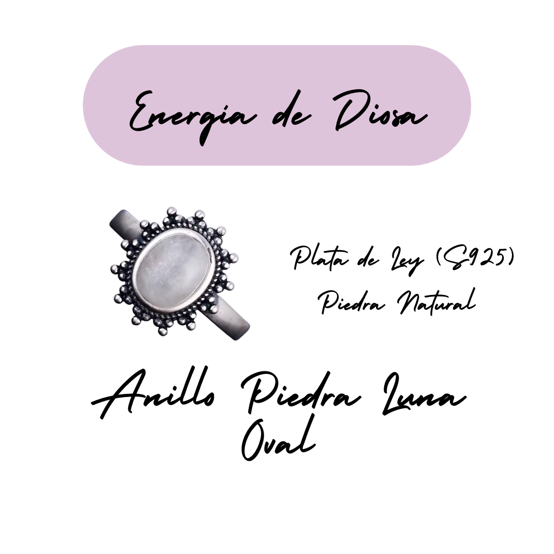 Anillo Piedra Lunar Oval - Energía de Diosa - Plata de Ley