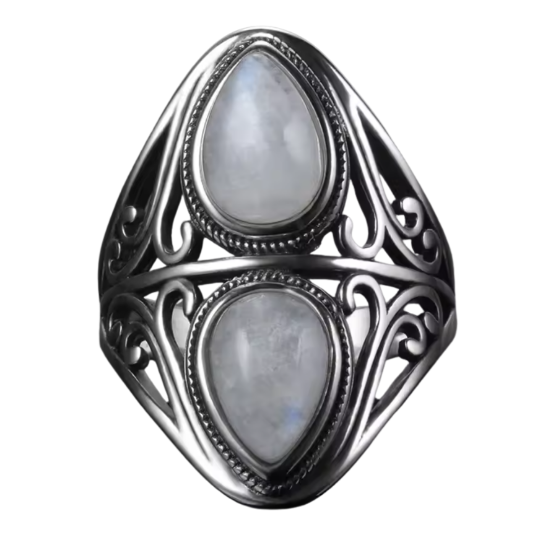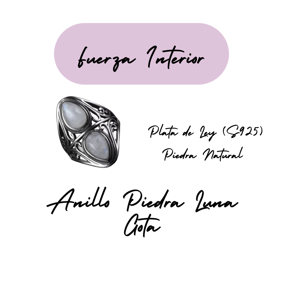 Anillo Piedra Lunar Gota - Fuerza Interior - Plata de Ley