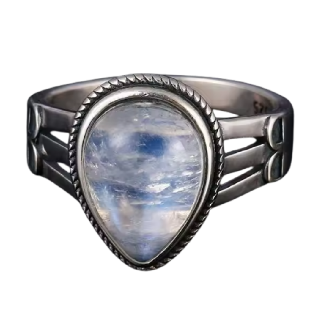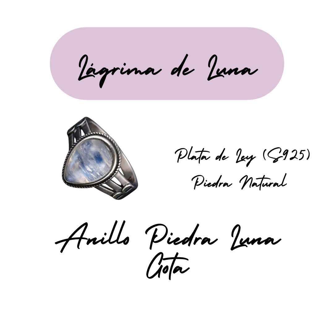 Anillo Piedra Lunar Gota - Lágrima de Luna - Plata de Ley