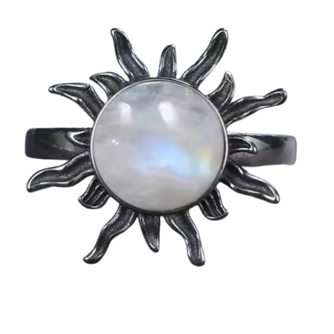 Anillo Piedra Lunar Redondo - Magia Serena - Plata de Ley
