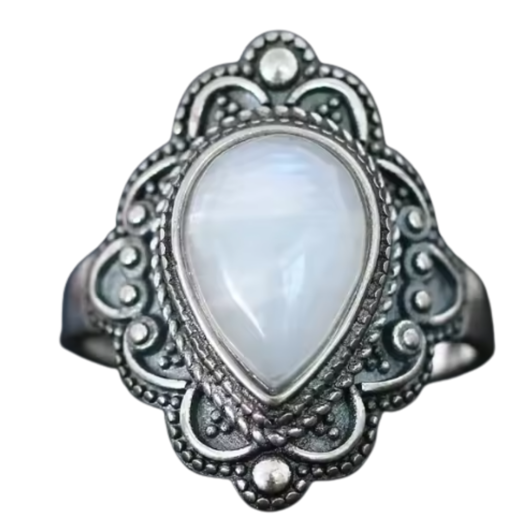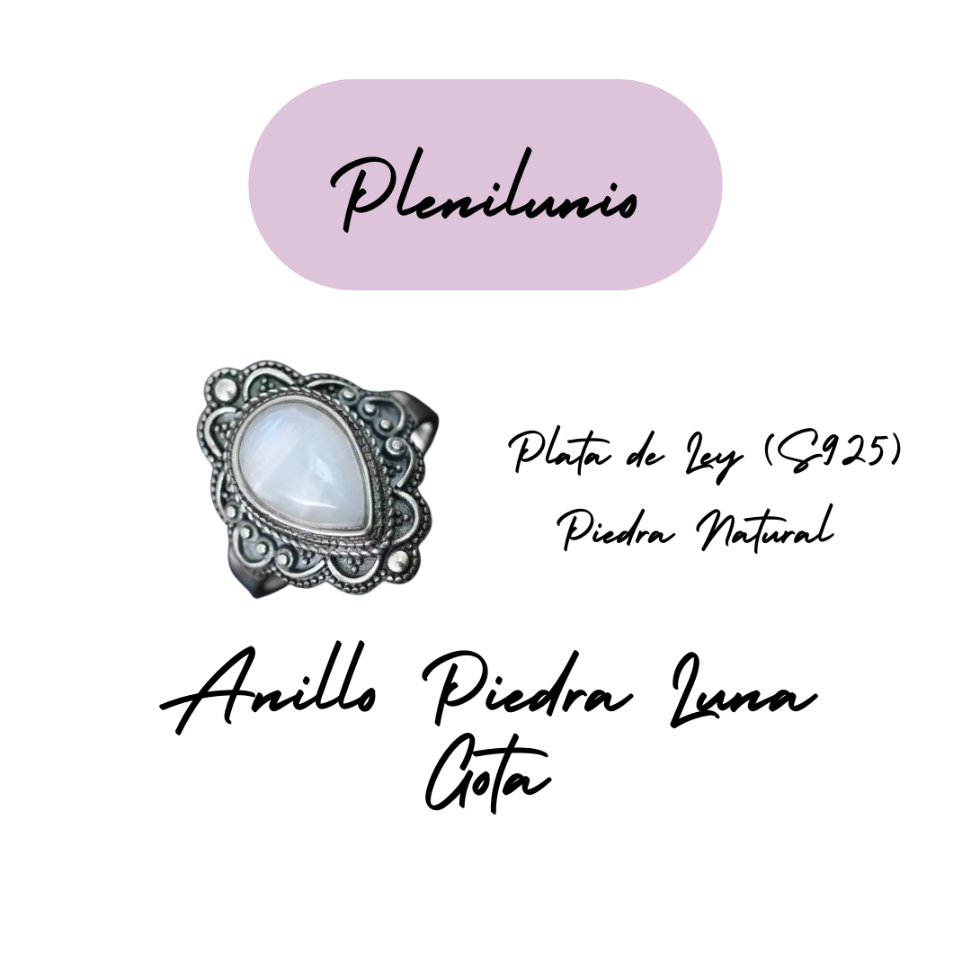 Anillo Piedra Lunar Gota - Plenilunio - Plata de Ley