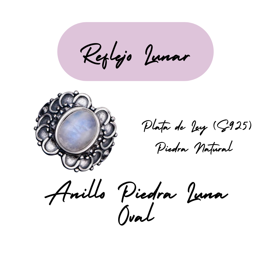 Anillo Piedra Lunar Oval - Reflejo Lunar - Plata de Ley
