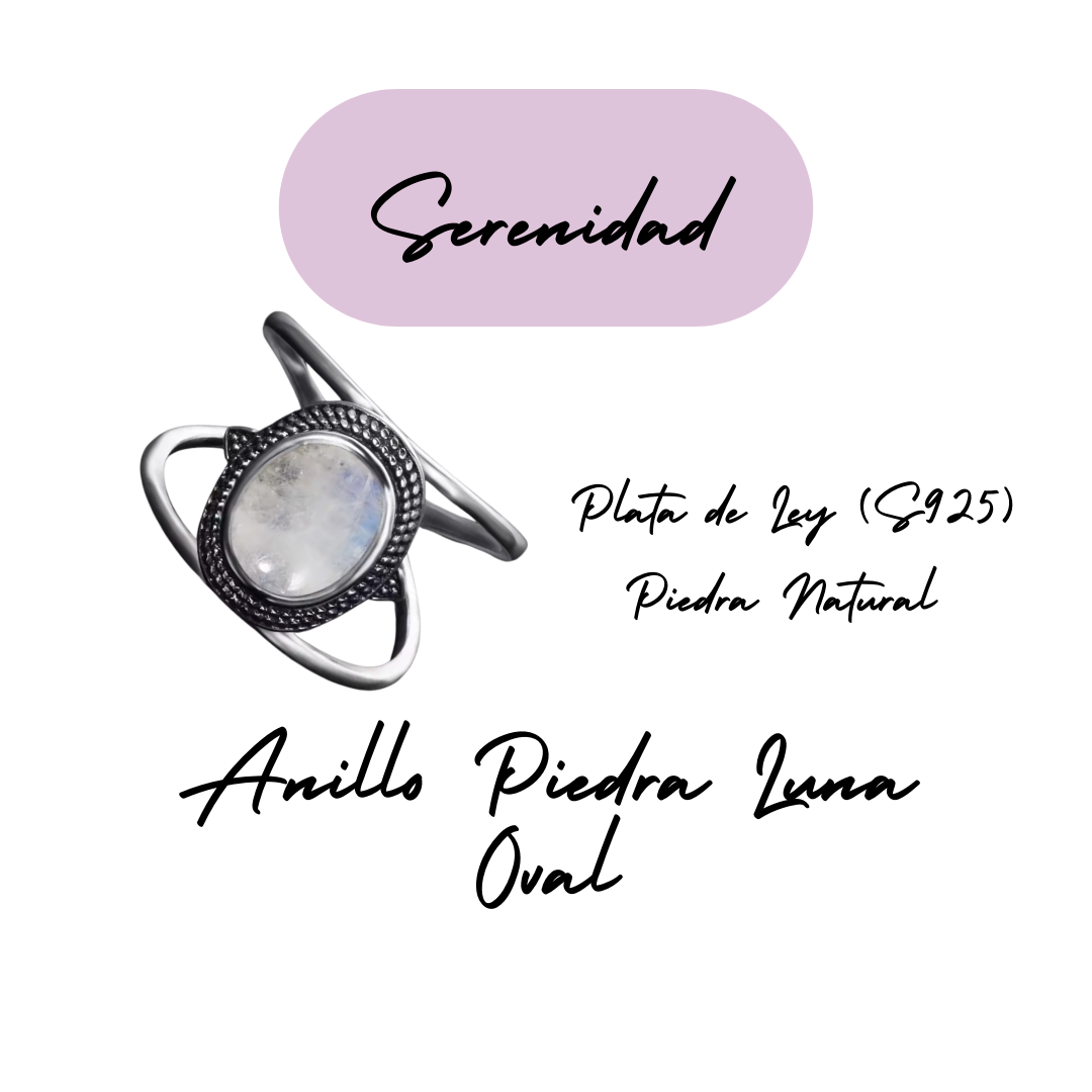 Anillo Piedra Lunar Oval - Serenidad - Plata de Ley